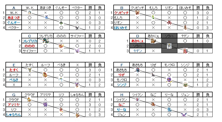 尚、リーグの結果が同率の場合は合計種族値の低い方が勝ちとなります