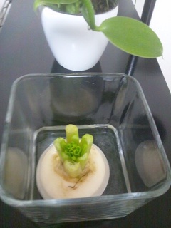 切り落とされたカブはこのように水につけて育てようと思います