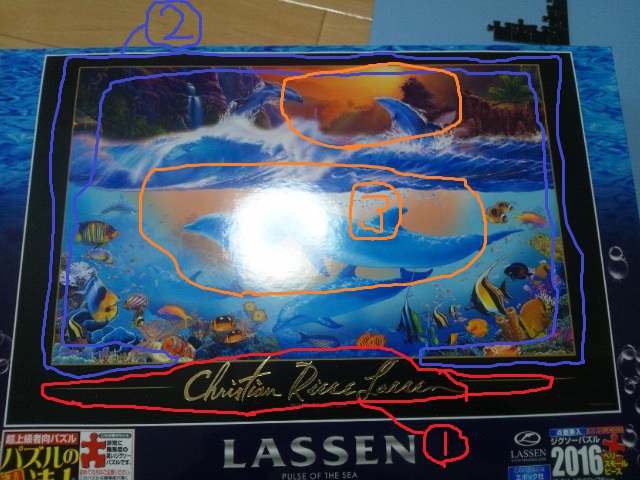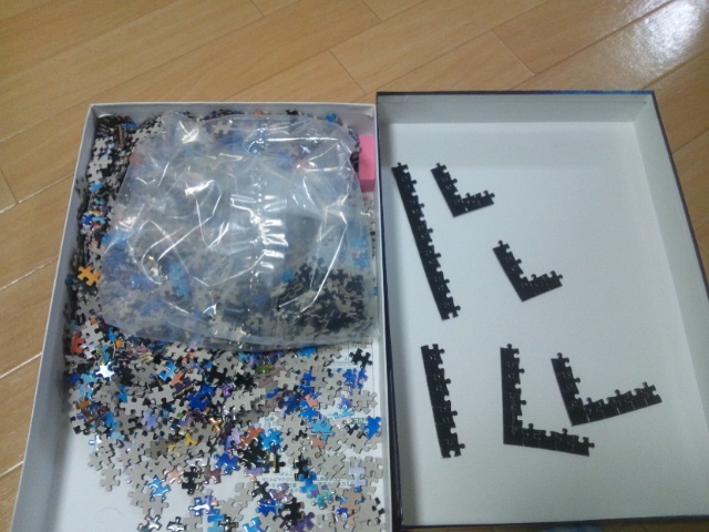 最初の写真のパズルのパッケージを見ると、確かに端は真っ黒